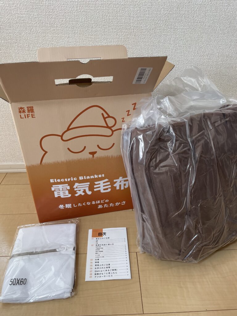今回購入した電気毛布の内容物は以下の通りです。