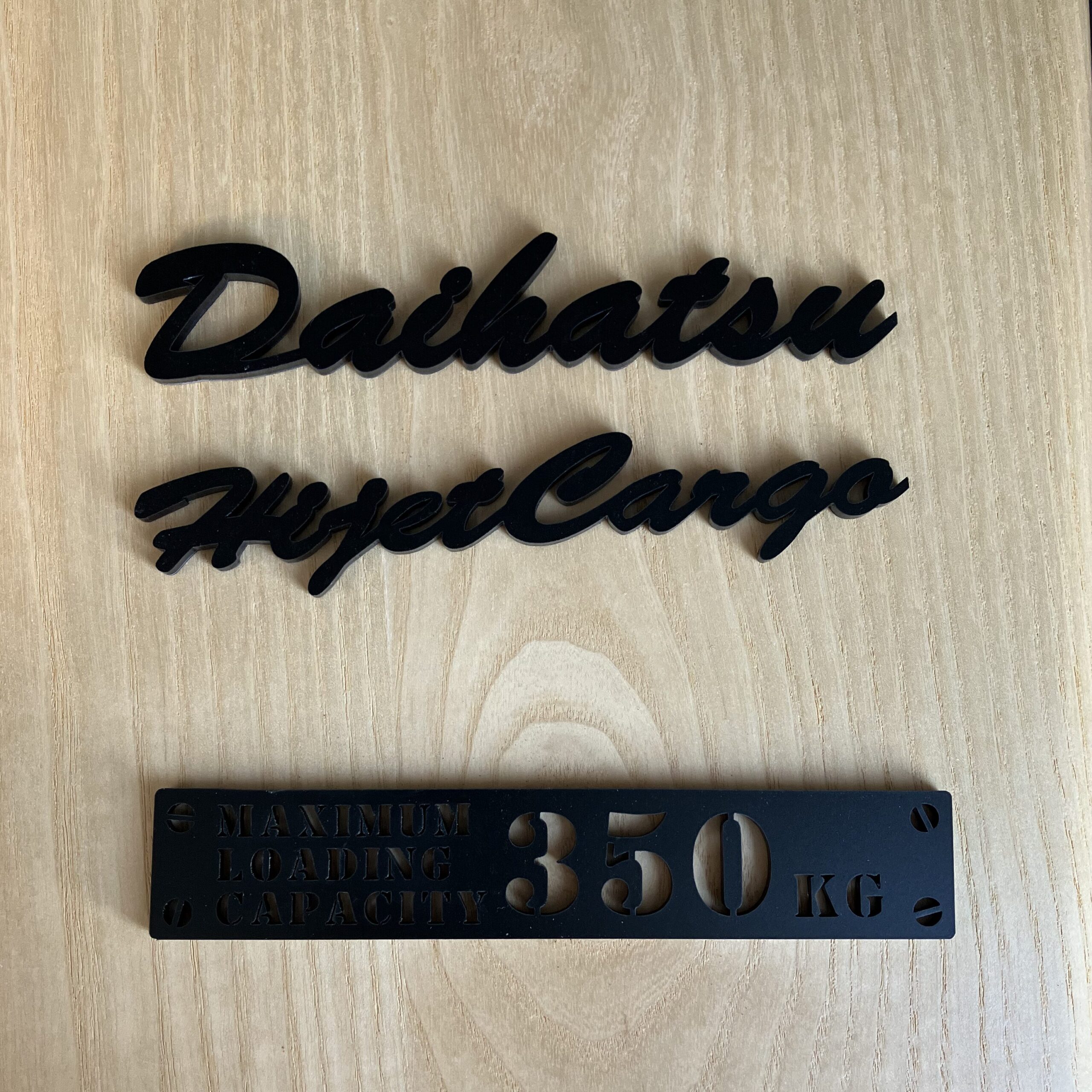 「DAIHATSU」「HIJET CARGO」の文字はシンプルながら存在感があり、純正よりもおしゃれな雰囲気になっています。